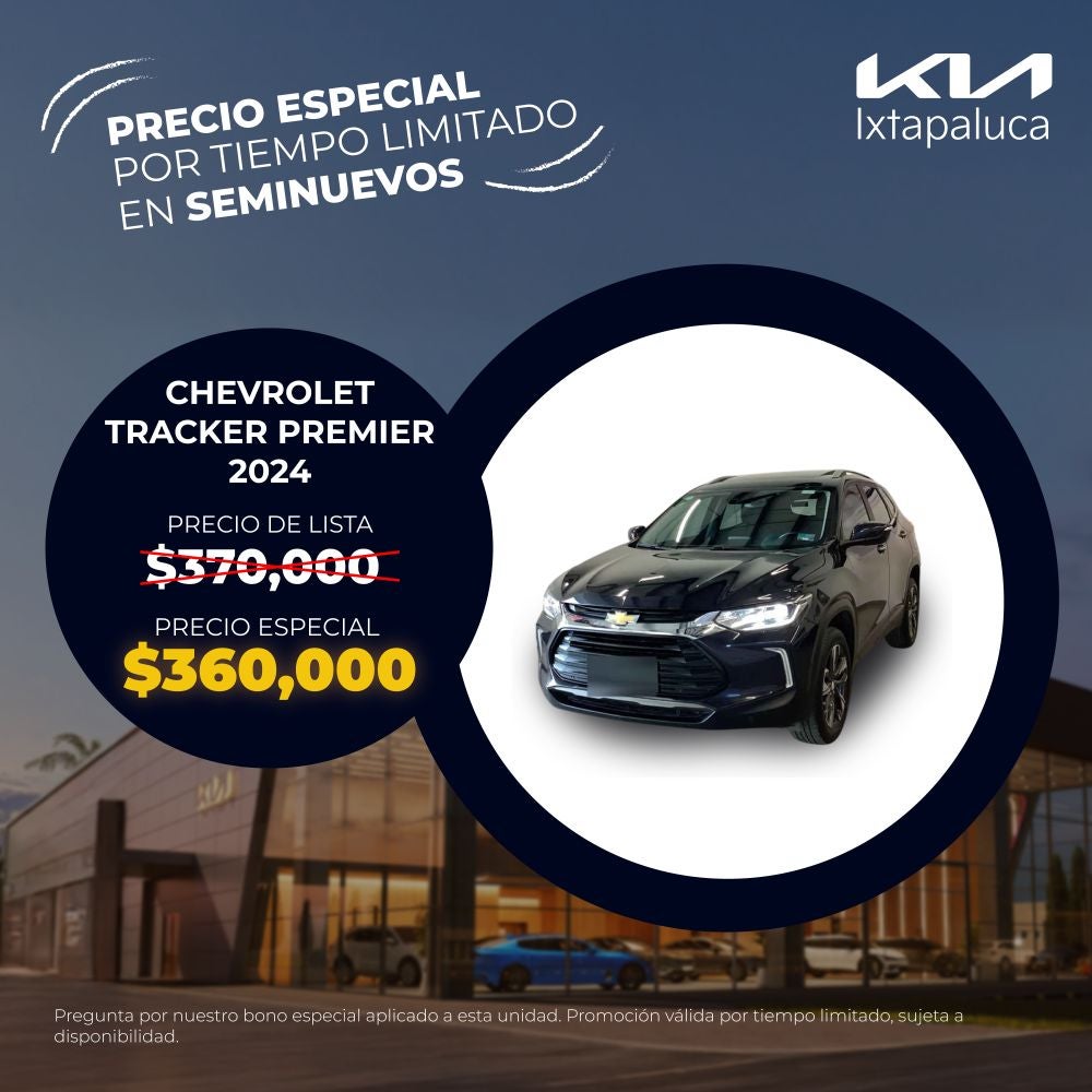 El precio mostrado ya incluye el bono aplicado. Válido únicamente para Chevrolet Tracker Premier modelo 2024 seminuevo